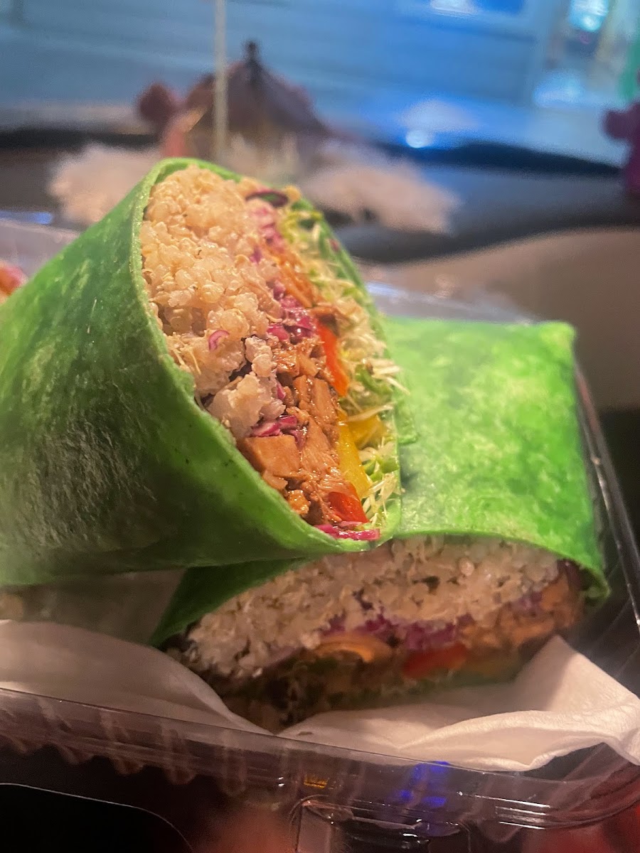 Jam Pot’s menu leans heavily into plant-forward choices, accommodating vegans and health-conscious diners alike. The jerk jackfruit wrap stands out as a satisfying option for a quick, filling bite, while the roasted veggie quinoa bowls and salads offer balanced, colorful plates for those after lighter fare. The fresh juices—such as turmeric blends—add another dimension, appealing to visitors looking for both taste and functional benefits like easing inflammation.