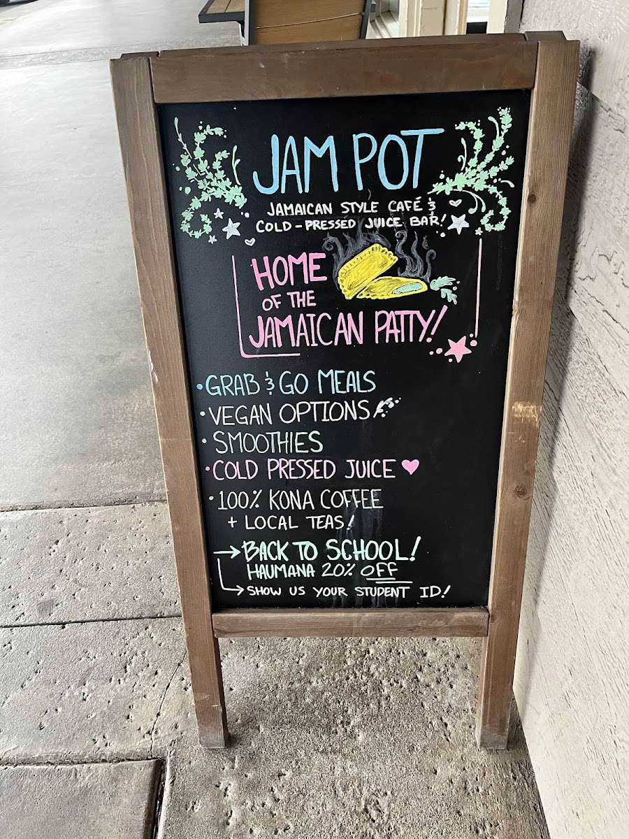 The menu at Jam Pot features a variety of food and drink options suitable for casual dining, quick orders, or light meals throughout the day. The offerings primarily include beverages such as fresh juices and coffee, alongside a selection of light meals focused on Jamaican-inspired cuisine.